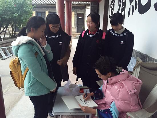 杜若溪为粉丝签名