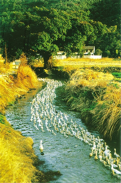 月落垟和月落垟河是那样水乳交融、不可分割地联系一起——如果从空中往下看,月落垟村与周围的村庄,就像棋盘上的一个个子,而围在各个村子周围的河流,就像一个大大的棋盘,它衬托着、滋养着、承载着所有的村子,黑白分明,调和又统一——这真是天底下最和谐、最美丽的图画呀!
