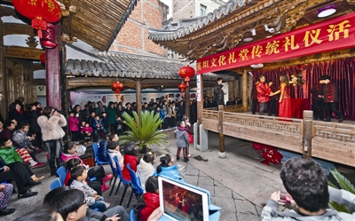 去年以来,瑞安共新建文化礼堂46家,加上2013年建成的38家,累计已达84家。为更好推进文化礼堂建设,瑞安创新机制,建立完善了文化礼堂“总干事驻堂制”等五项制度,目前全市文化礼堂总干事达94人,文化大使98位。同时推出了“八大员”定期辅导制、活动月报制等制度,确保活动正常开展。整合部门资源,制订了《瑞安市机关部门服务文化礼堂活动项目安排》,明确了29项具体项目、服务内容和活动时间,着力用好管好文化礼堂。