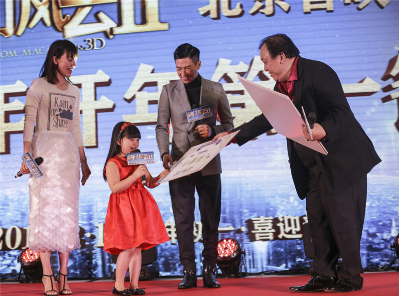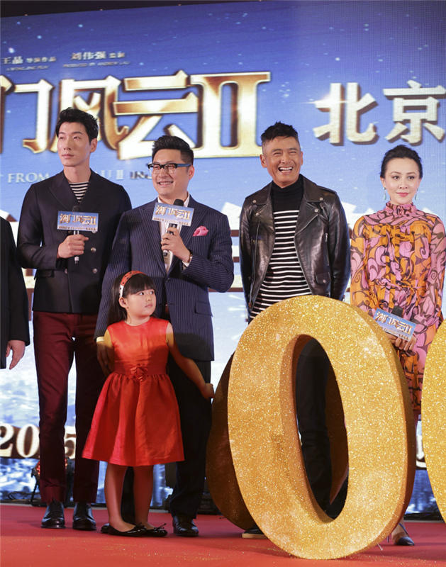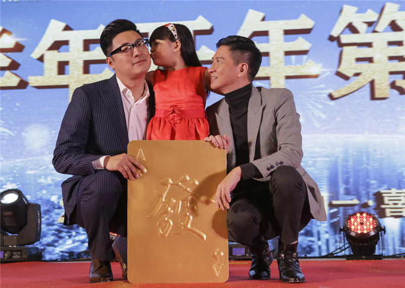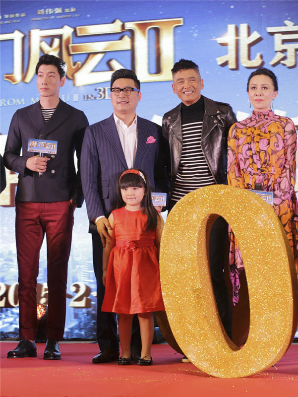 腾讯娱乐讯2月8日电影《澳门风云2》在京举行首映发布会,除了主演周润发、张家辉、王诗龄出席活动之外,《爸爸的假期》的导演王岳伦和主演张亮也惊喜亮相,并接受周润发亲手发“牌”。作为同在大年初一上映的两部影片,《爸爸的假期》与《澳门风云2》并称为博纳影业的两张王牌,而“国民小公主”Angela更是横跨两部贺岁大片,被导演王晶(微博)封为贺岁“小萌主”。