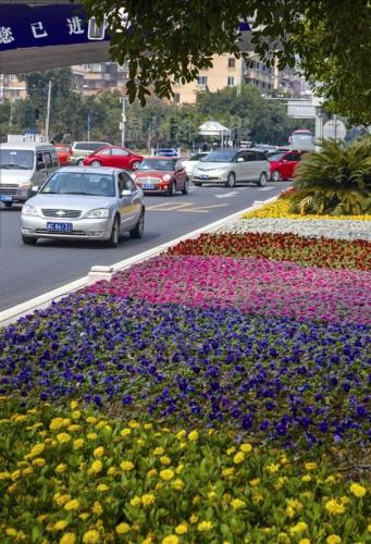 瓯海区温瑞大道往温州南高速口沿线的绿化带里,五彩相间的植物长势良好。目前,这一带的道路环境面貌已大为改善。温都记者姚卡/摄