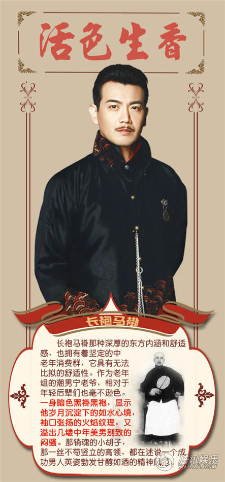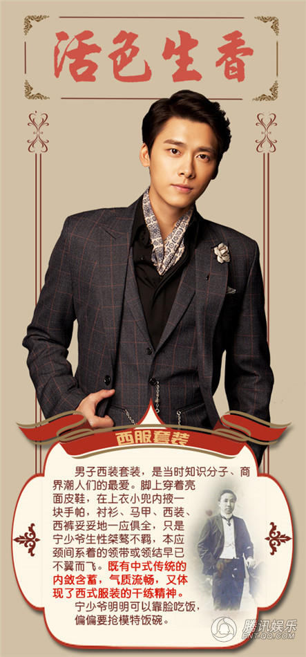腾讯娱乐讯在湖南卫视金鹰独播剧场播出的国民偶像拼命之作《活色生香》,被网友誉为2015年度“舔屏大剧”,不仅有唐嫣(微博)(微信号:tangyan_wxvip)、李易峰(微博)、舒畅(微博)、陈伟霆(微博)等一众夺人眼球颜值超高的人气偶像,剧中的服饰也被誉为“良心之作”。小花纽扣、欧根纱外套、侠客风衣、男主的高筒袜成为热议焦点,引领民国服饰新潮流。