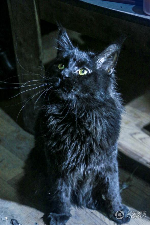 在影视界,有三样最难拍摄的就是水、动物和小孩,而我们《梦魇人偶》的拍摄片场中就有这样的一个特别来宾---缅因猫“大黑”。很多爱看惊悚电影的观众都知道,这类型的电影中常常会出现黑猫,因为符号化的黑猫本身给人的感觉就是神秘又有点邪恶。“大黑”的性格温顺且内向,在第一天的拍摄完成就因为过于紧张而生病了,病好后再次参加演出时,又因为紧张,表现的非常不配合,主人只能让通过让它自己独处休息以及现场制作玩具等方式来哄它高兴、安抚情绪。到了夜深拍摄时,大黑显得放松多了,在一场需要它独自从楼梯上走下来的戏份中,它竟然相当灵巧的配合镜头运动,表现得非常出色,短短几分钟时间就完成了拍摄,令在场的工作人员都禁不住啧啧赞叹。