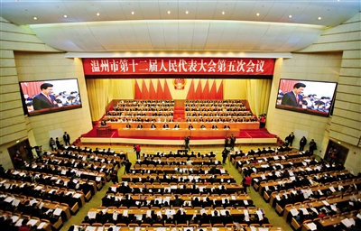 温州网讯 新常态,新愿景,新使命。昨日上午,温州市第十二届人民代表大会第五次会议隆重开幕。出席会议的市人大代表肩负全市人民重托,履行宪法和法律赋予的神圣职责,满怀豪情地步入市人民大会堂,听取市政府工作报告。