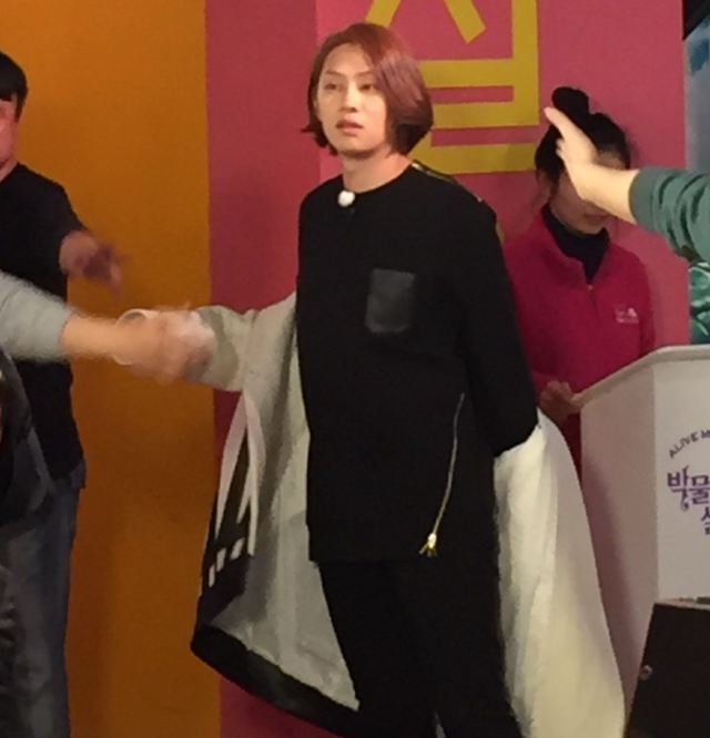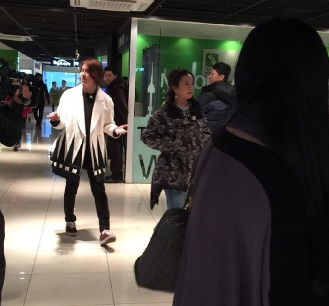 有韩国网友2月4日在韩国遇到金希澈和赵薇一起录制节目,希澈一身白黑相间的大衣,赵薇也精心打扮,一前一后走着,网友调侃:两位大美女。
