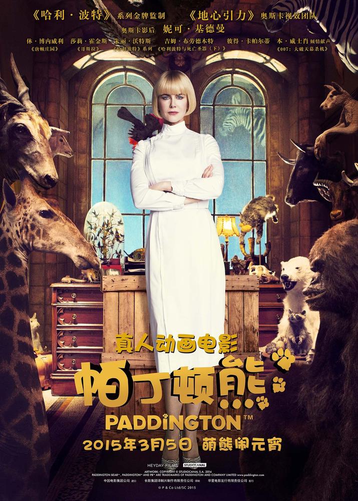 腾讯娱乐讯真人动画电影《帕丁顿熊》近日公布了中文版人物海报,主演妮可•基德曼、休•博内威利、吉姆•布劳德本特、莎莉•霍金斯、彼得•卡帕尔蒂与小熊帕丁顿分别以剧中造型亮相,也正式公布了该片在中国的上映日期为3月5日,正值农历正月十五元宵节。选择这样一个档期,也正好迎和了影片“合家欢”的定位。