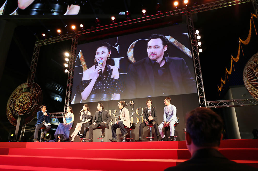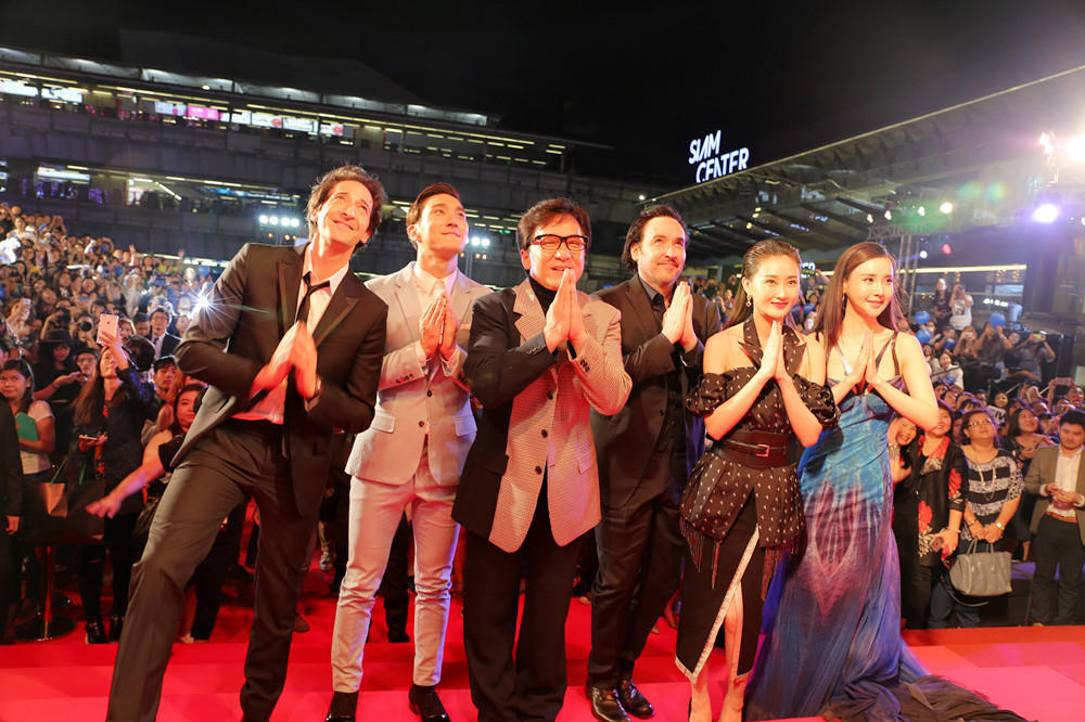 腾讯娱乐讯超级传奇巨制《天将雄师》日前已结束了国际巡回宣传的最后一站泰国的宣传活动。剧组到达泰国曼谷时,粉丝十分热情。成龙、林鹏(微博)、约翰·库萨克、阿德里安·布劳迪和崔始源所到之处,呼声特别高。发布会时,几位主创在舞台上摆出泰国问好的姿势,向所有到场朋友问好。女一号林鹏在现场时很受欢迎。离开现场时,她甚至遭到疯狂粉丝追车,此追车女生追了很长一段路,林鹏自己也被感动了。