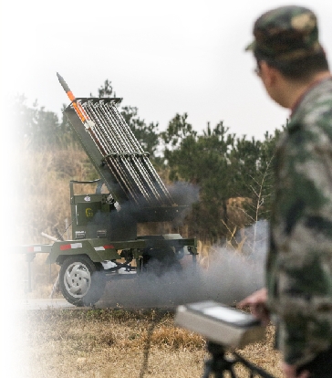 16时30分左右,伴随着“发射”的口令,先是“砰”的一声巨响,一阵黑烟之后,第一枚火箭弹升空了,铅灰色的云层中绽开一朵白色“小花”,然后随着倒数声,再次先后传来“砰、砰”声,2枚火箭弹也成功射入云层。