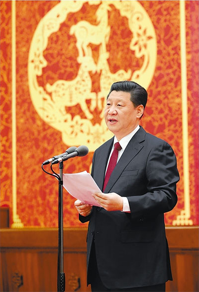 2月17日,中共中央、国务院在北京人民大会堂举行2015年春节团拜会。中共中央总书记、国家主席、中央军委主席习近平发表重要讲话。