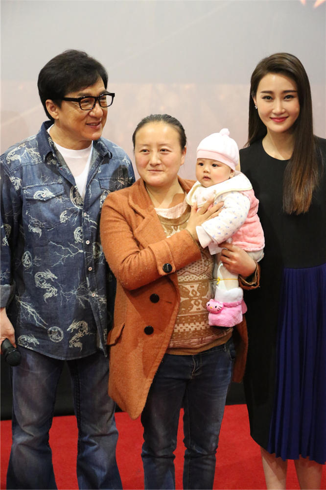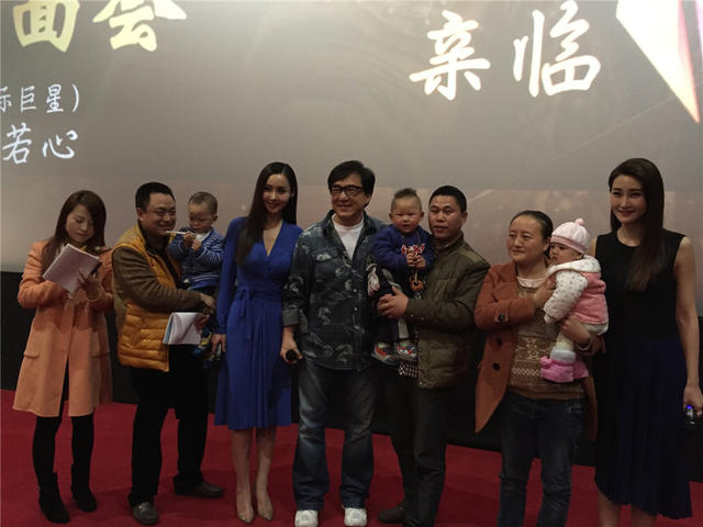 跟之前的武汉、重庆一样,成都影城内举办的见面会场场爆满,很多观众都是全家出动。有意思的是,很多成都的观众甚至带着嗷嗷待哺的宝宝来影院,排除各种困难来力挺《天将雄师》。现场主创特意邀请三位分别只有4个月、1岁和2岁的“奶娃观众”一起合影,成龙大哥幽默地形容这是一个“最小观众场”。