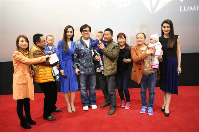 大年初四起,成龙携主演林鹏(微博)、王若心到影院谢票并向观众拜年,所到之处不仅场场爆满,观众齐声向成龙祝福新年快乐,现场更不乏年轻人带领奶娃、七旬八旬老人全家到场助阵,成龙电影品牌的号召力可见一斑。