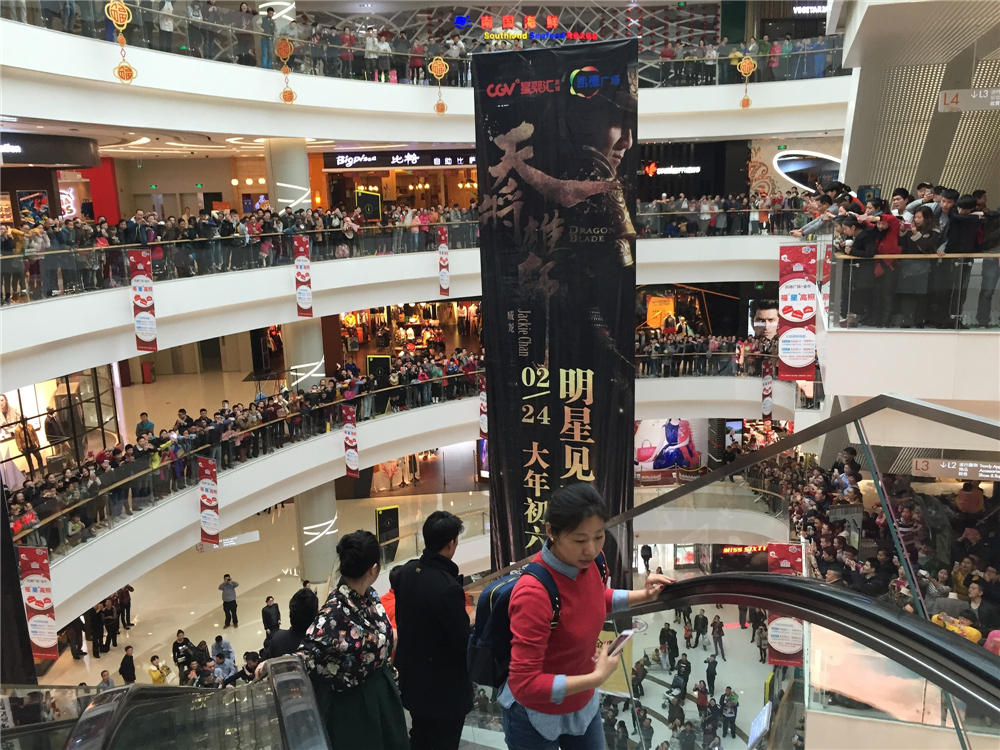 24日,春节假期最后一天,《天将雄师》主创成龙、林鹏、王若心等来到成都,在影院向观众谢票并拜年。在其中一家影城,5层楼站满了5000多人欢迎《天将雄师》主创的到来。当成龙大哥出现在大家面前时,全场爆发出震天动地的欢呼,高呼《天将雄师》的片名,成龙大哥也频频向大家挥手致意,现场气氛格外热烈。