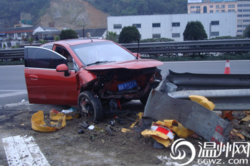 2月24日下午16时30分许,温州高速交警支队接到了一起报警求助,称在G15高速公路往福建方向温州绕城进口发生一起事故,有人受伤。接报后,温州高速交警支队一大队民警立即赶赴现场,发现在川流不息的两条高速公路分叉口的分流岛上停着几辆事故车,事故车周围围了一群人,一辆闽A59Z19的红色雪佛兰轿车车头与高速公路护栏顶端正面撞在了一起,受损十分严重,车内安全气囊全部弹出,车内的驾驶员和另外四位乘客都是不同程度的受伤。驾驶员林某称,车内有个三岁的小女孩受伤严重,事故当时小女孩的头部撞了一下,现在都没有说话了,高速交警立即组织120救护车将车上的五名伤者全部送往温州附一医进行急救。
