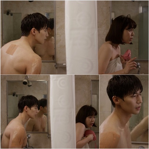 剧照中,以浴巾包裹身体,露出香肩的李荷娜一脸迷茫,而就在一层薄布帘相隔之外就是宋再临,背后和胳膊上都贴着膏药的宋再临则对闯进男浴室的女人充满警惕与惊慌。不管是李荷娜的大尺度裸露,宋再临健硕的胸肌和后背也给广大的观众带来了福利。