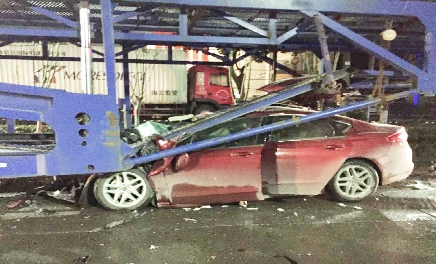 大约半个小时后,李某等人将半挂车上的新车全部卸完,忙完活后,李某坐到驾驶室内准备吃点宵夜,然后驾车离开。不料他刚上车没一会儿,就听到车辆后方传来“嘭”的巨响,并感受到车子强烈震动了一下,于是下车查看,竟然发现一辆轿车钻到了半挂车车底下。