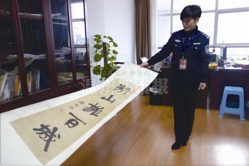 据瓯海区人民法院网上司法拍卖业务负责人徐晓丹说,在上次拍卖中,9件真迹中有6件被人拍走。其中,《钱杜(叔美)山水手卷》拍出最高单笔成交价11.2万元,被一位江苏南京人拍走。而13件被鉴定为赝品的书画作品,有10件被拍下成交。“这幅写着‘湖山拥百城’,落款为康有为的书法就被鉴定为赝品,起拍价1.35万元。”昨天,徐晓丹指着一幅书法作品说。