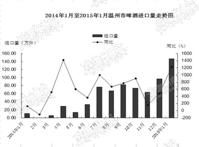 回顾2014年温州地区啤酒进口情况,总量达550多万升,但峰值并非出现在夏季,而是12月,当月进口总量接近百万升。