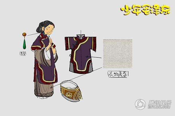 据了解,影片中所有角色造型都严格按照故事发生的年代与人物性格而设定,透过设计图细心的观众会发现每个人物的衣着面料都有严格的考究,通过人物造型便可以明显的区分角色的身份,为此片方甚至还专门找到历史专家参与幕后制作。