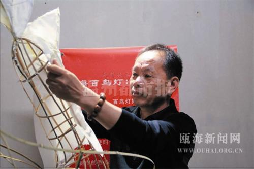 在给孩子们上课间隙,温都记者采访了民间灯彩手工艺大师王大普,今年60多岁的王大普是土生土长的温州人,从上世纪80年代起从事灯彩制作,是省级非遗项目“百鸟灯”的传承人。