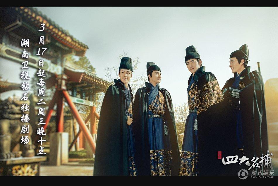 电视剧《少年四大名捕》将于3月17日起每周二、周三晚10点登陆湖南卫视钻石独播剧场。剧中,张翰饰演的冷血背负着狼族王子的神秘身份,与此前霸道总裁的荧幕形象相去甚远;杨洋饰演的无情公子玉树临风,武功非凡却为情所困;陈伟霆变身看似吊儿郎当,实则重情重义的追命;茅子俊则是性情宽厚、善良真诚的铁手,男神集结,着实令人期待。此番四大名捕集结完毕,并最终公布3月17日定档消息,众网友纷纷表示“喜大普奔!等的好辛苦终于要开播了!”
