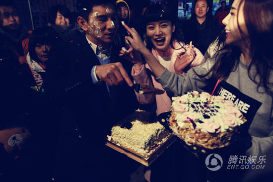 腾讯娱乐讯随着上海电视剧频道《向着幸福前进》的热播,唐于鸿和吴奇隆剧中感情曲折让很多观众和网友心疼。戏外,他们经常一起讨论剧本,对工作认真仔细,配合相当默契。吴奇隆称,在剧组工作很愉快,唐于鸿是那种很敬业有爆发力的女演员,也是个很不错的工作伙伴。近日,剧组曝光片场生活照片,在吴奇隆提前杀青时,唐于鸿和剧组准备蛋糕为伙伴庆祝,还不时调侃恶搞,互抹蛋糕,吴奇隆已然成大花脸,逗乐剧组工作人员。