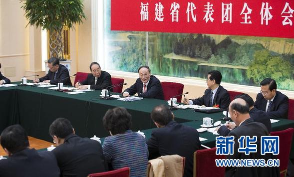 3月6日,中共中央政治局常委、中央纪委书记王岐山参加十二届全国人大三次会议福建代表团的审议。 新华社记者黄敬文摄