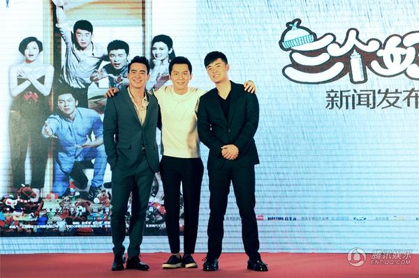 陈赫婚变后亮相《三个奶爸》发布会 全程带笑