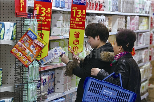 不少市民来到超市,一边低头用手机扫码,一边比较线上线下商品价格。