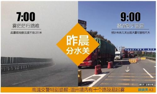 “昨天清晨7时许,104国道苍南桥墩段7公里长的下坡路段,能见度不到20米。”而当时,温州市区天气晴好。有人因此调侃,世界上最远的距离是:你在市区天气晴好,我在高速大雾封道。