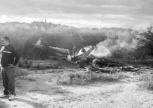 3月9日,阿根廷拉里奥哈省,一名男子在坠机现场。