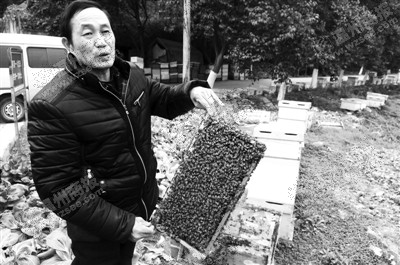 管老伯养了30年的蜜蜂,平时不是花期的时候,他都要定时给它们喂糖,而被人偷走的这几天,这12箱的蜜蜂没有得到精心照料,死掉了近一半,这让管老伯挺心疼,不过好在总算找回来了。