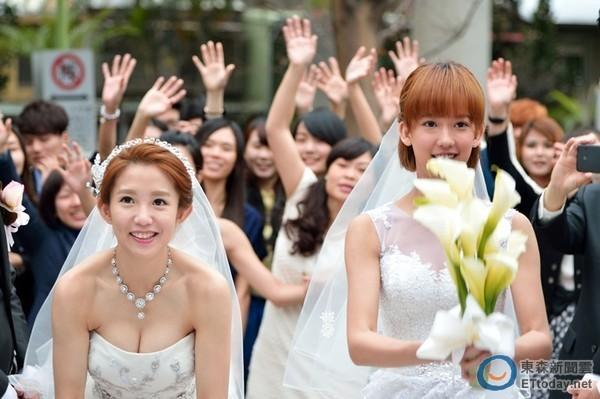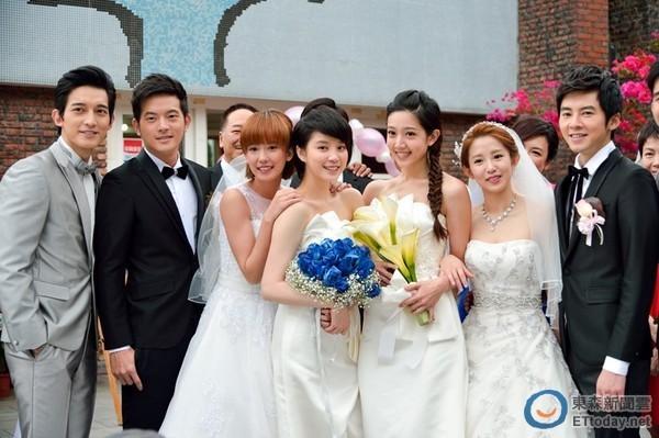 腾讯娱乐讯据台湾媒体报道,《22K梦想高飞》将完结!宥胜、孟耿如与李国毅、郭书瑶(微博)两对情侣一起走进结婚礼堂,两位新娘各有特色,孟耿如走清纯派,郭书瑶则爆乳新娘礼服,连李国毅都开玩笑说:“我的新娘子最有诚意。”孟耿如就爱开郭书瑶玩笑,没尺度的指着她胸部笑说:“看她都胀奶了。”
