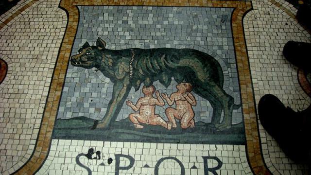 古代拉丁姆地区亚尔巴·龙加城中,国王努米托的弟弟阿穆略篡夺了王位,并将国王女儿生下的双胞胎投入河中。双婴被冲到河岸边,靠着一只母狼的乳汁喂养而存活,他们长大成人后,便杀死阿穆略,使努米托重登王位,后又离开亚尔巴·龙加,在台伯河畔母狼喂养他们的地方建了一座新城,称为罗马。因此,罗马城的创立离不开母狼的哺乳,罗马人也将母狼视为“母亲之狼”。为了表达感念之情,罗马人精制了一个饲养着一只母狼的永久性兽笼,置放在市政厅前面最醒目的位置,还将母狼镌刻在罗马城徽上。古罗马的每个庄园门上都挂一个狼头,以示神威。如今在卡彼托林博物馆有一尊母狼青铜雕像,塑造了母狼和它肚腹下两个吸吮乳汁的婴儿,罗马帝国灭亡后,许多文明成果被毁,但这尊雕像却因罗马市民的敬慕而幸存至今。