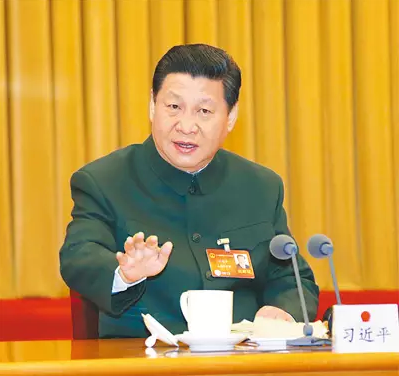 2013年两会,习近平出席解放军代表团全体会议的通稿约1100字,军民融合部分约240字;