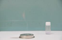 随着不锈钢盖里香水的燃烧,火焰逐渐从小变大,而不锈钢盖内的香水也发出了“吱吱”的声响,空气中伴随着淡淡的酒香味。