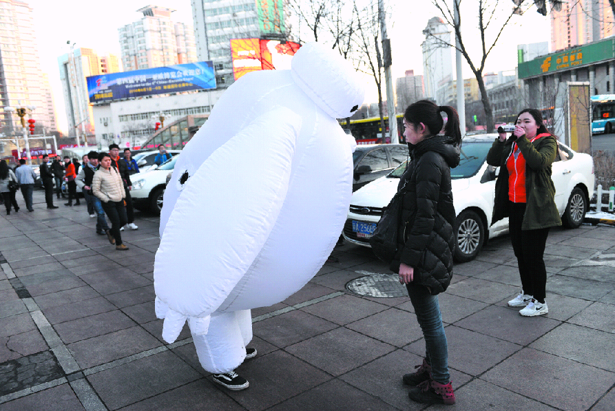 男子装扮成卡通人物“大白” 街头向女友求婚(图)
