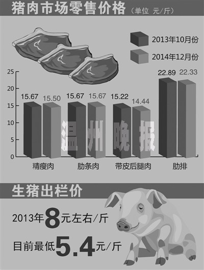 那么为何出栏价低了、批发价低了,唯独市场价不低呢?市菜篮子集团相关人员表示,猪肉市场价一般会随着批发价升而升,但很少因批发价跌而降,其中的原因很难说清。