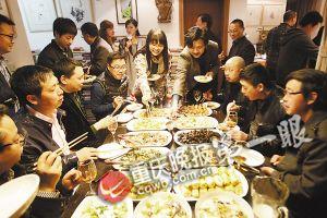 晚上6时30分开饭。杨济为一声行酒令,30多个人齐举杯。音乐嘉宾孙平吃得快,三五下喂饱自己便抱起吉他唱歌给小酌的人听,孙平是愚人船乐队主唱,也是重庆一家杂志主笔。