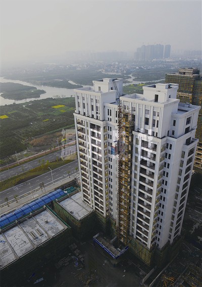 昨天,记者来到施工中的三郎桥片区,探访工程最新进展。汽车刚驶入文昌南路,林立的高楼便跃入眼帘,片区西南角的6幢大楼被脚手架与绿色安全网团团包裹,另外6幢则已“褪”去外衣,刷上了一层乳白色涂料。记者乘施工电梯登高眺望,近在眼前的三垟湿地与文昌路边的油菜花地交相辉映,添上了一抹温暖的黄绿色彩。