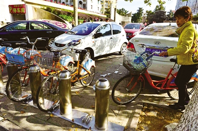 我们收到市民关于此类情况的投诉比较少,但工作人员在公共自行车点上管理时发现问题反映的比较多。对于自行车被私家车堵住的情况,我们只能致电114、交警联系车主来移车,但成功与否不确定,有些车主移了车,过一会儿又停回来了。这样停车,对我们的管理也造成了困难,例如,点上的自行车满了,工作人员本应将车辆拉出来,用铁链锁好,空出位置方便市民还车,但如果被私家车围堵了,就没有空间移车了。