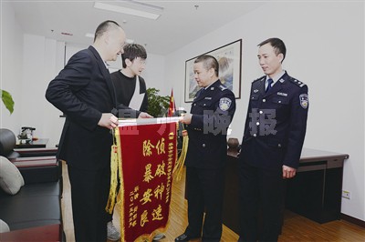 温州网讯 “感谢您,我们一家人真的非常感谢您!今天特地来送锦旗给您们以表示我们的感激之情,我们永远都会记得‘公安’两个字!”上周五,“乐清3·15特大持枪绑架案”的受害人小王(化名),和他的父亲王先生一起来乐清市公安局刑侦大队,给大队长郑建忠送来了上书“侦破神速除暴安良”的锦旗以示感谢。
