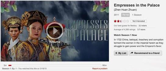 腾讯娱乐讯今日,有媒体爆料称“《甄嬛传》登陆全球最大的视频网站美国Netflix,这部国人大爱作品评分却低到不能忍:Netflix美国站是2.5星,加拿大站只有1星(满分为5星)”。