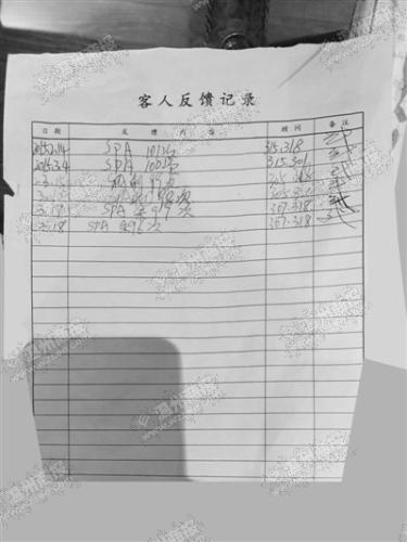 在店内的一张客人充值纪录中显示,张先生从2014年3月15日至今年1月31日就有6次充值纪录,总计金额8万多元。于2014年11月24日、2014年11月30日、2015年1月1日、2015年1月31日这四天,更是保持着高频的充值记录。