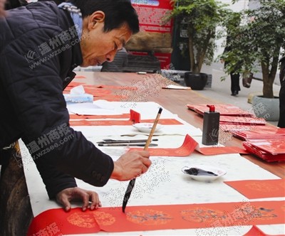 书法家陈光亮给市民写春联。