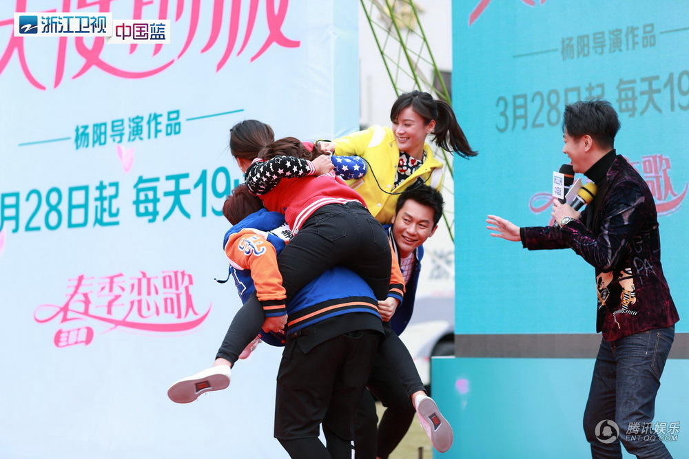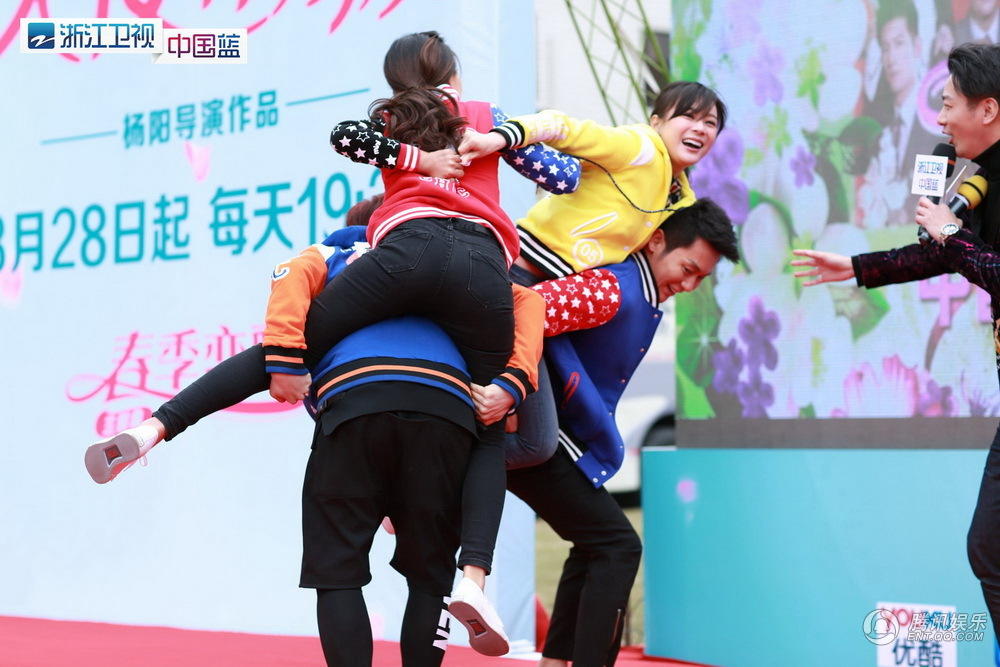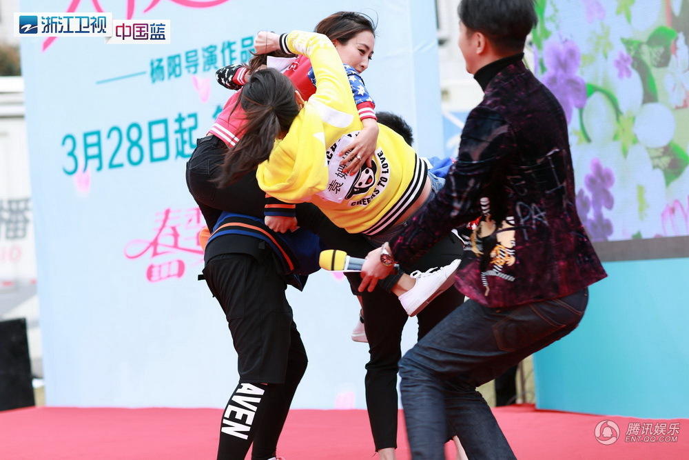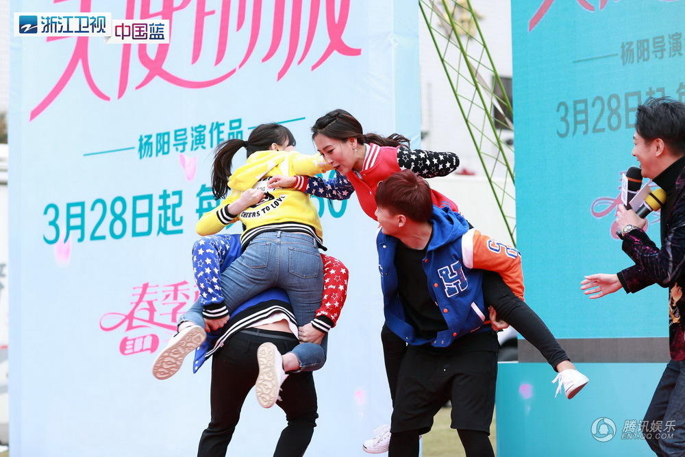 值得一提的是,发布会上四位主演还玩起了撕名牌。李晨和袁姗姗结队,马苏和姜晓冲一对,男生背着女生捉对厮杀,两个女生都秒变“女汉子”,马苏都要被袁姗姗从姜晓冲背上揪到地上了,手还是死命攥着袁姗姗的名牌不放松。而袁姗姗也直言,论“女汉子”风范自己的确不及马苏,“我在别的组还是挺女汉子的,但是到了这个组戏里戏外都特别小女人,她(指马苏)一直欺负我,戏里还有一场我们打架的戏,我是真打不过她。”