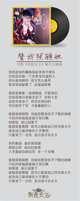 作为90后实力唱将,暖男胡夏演唱过很多华语电影中的经典歌曲,但大多都以青涩的爱情为背景,如《那些年,我们一起追的女孩》、《同桌的你》等卖座青春电影。此次为《我是女王》献声,胡夏采用更成熟的声线,来演绎都市男女中的情感。歌曲《替我照顾她》由金曲奖制作人陈建骐进行制作,这也是陈建骐与胡夏的首次合作。值得一提的是,陈建骐同时也是电影《我是女王》的音乐监制。谈及此次合作的契机,陈建骐透露:“胡夏的声线很干净,是鲜活少年的声音。但此次的歌曲跟以往不同,胡夏用纯净的声音,演绎更具成熟内涵的歌曲,有关于更深层次的成长,这也是电影《我是女王》中想传递的信息。”