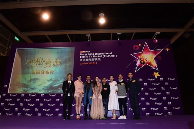 腾讯娱乐讯近日,由博纳影业集团出品的2015年度奇幻夺宝喜剧《神秘宝藏》在香港国际影视展举行发布会,博纳影业总裁于冬,导演陈嘉上(微博),本片导演兼主演郑中基(微博),主演黄子华、冯文娟、许维恩、李灿森、赵硕之、田启文、吴嘉龙等出席活动,主演陈法拉(微博)虽未能亲自到场,也通过VCR现身与其他主创共同“作战”。