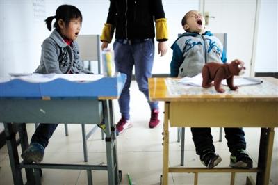 课堂上,坤坤在座位上打起哈欠。老师对坤坤的要求是,能不能专心上课不重要,能在座位上坐得住一堂课,就是进步。每一个老师对坤坤所有生活学习细节上的培养都是循序渐进的。