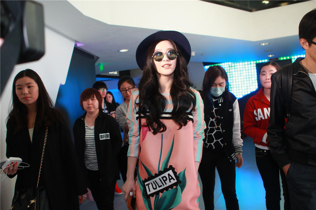 穿花衣戴墨镜 女神范冰冰休闲亮相腾讯公司