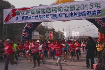 温州网讯 沐浴着春光,奔跑在“山路二十八弯”的瑞安塘下尖山,一览塘下新区全景,细数蜿蜒曲折的温瑞塘河水系。上周日举办的浙江省首届生态运动会暨2015年瑞安市塘下镇首届半程马拉松赛上,738名省内外参赛选手就在参赛之余体验了一次塘下山水。